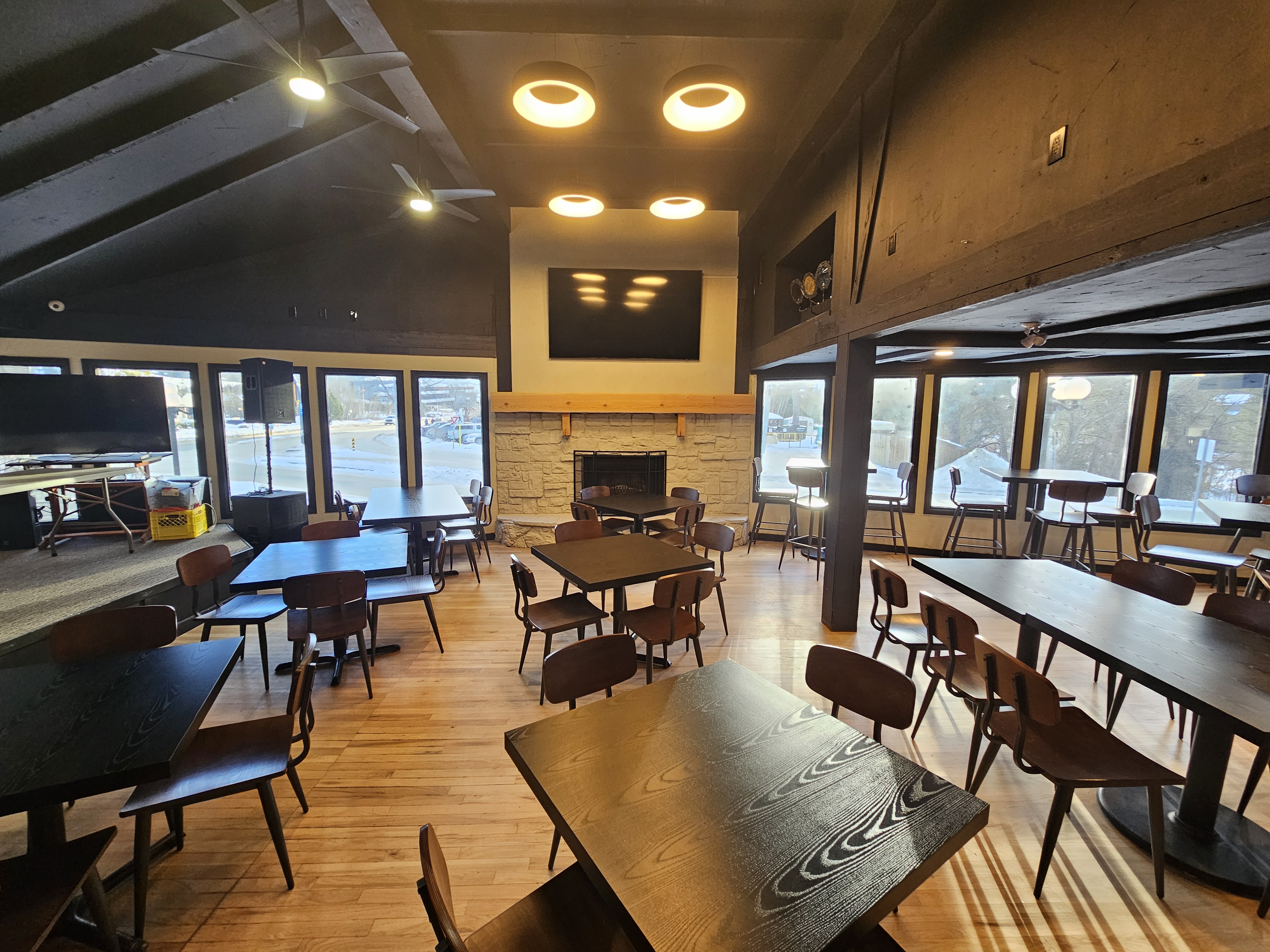 Canmore’s most famous gathering spot! Ideal for celebrations, corporate parties, weddings, sports teams, and get-togethers with friends and family. The room features expansive windows with stunning views, multiple styles of table seating, a main stage for entertainment and speeches, and a huge patio space to round it all out.
